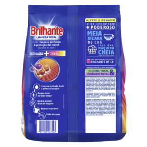 Brilhante Limpeza Total combina os melhores resultados de limpeza com a proteção das cores dos tecidos.